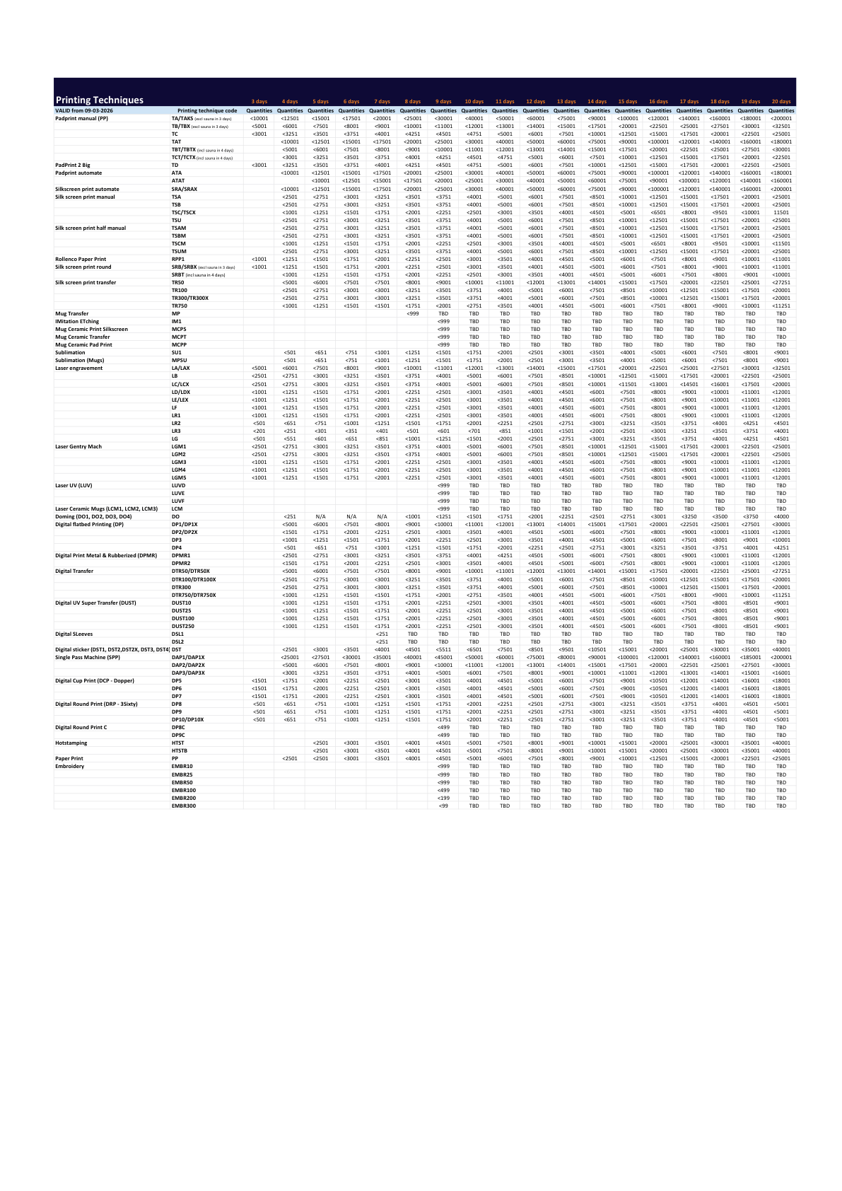 If you're placing a high-volume order (formerly known as an “elephant” order), please note that production times may be longer than usual when quantities exceed the limits listed for each printing technique. For more information, please reach out to your dedicated account manager.