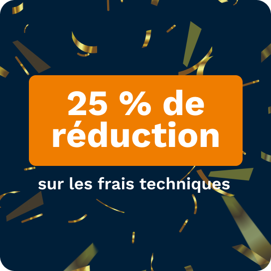 Pour célébrer notre anniversaire, nous offrons une réduction de 25 % sur les frais techniques du 2 mars au 31 décembre. Vous n'avez rien à faire, la réduction sera appliquée automatiquement.