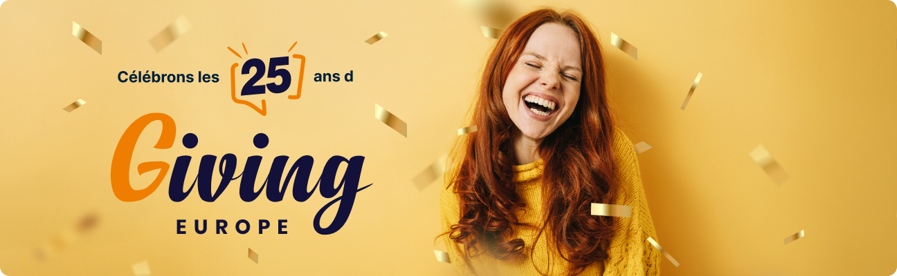 Cette année marque le 25e anniversaire de Giving Europe ! Une étape importante dont nous sommes extrêmement fiers. Pour célébrer cet événement, nous offrons une réduction de 25 % sur les frais techniques du 2 mars au 31 décembre.